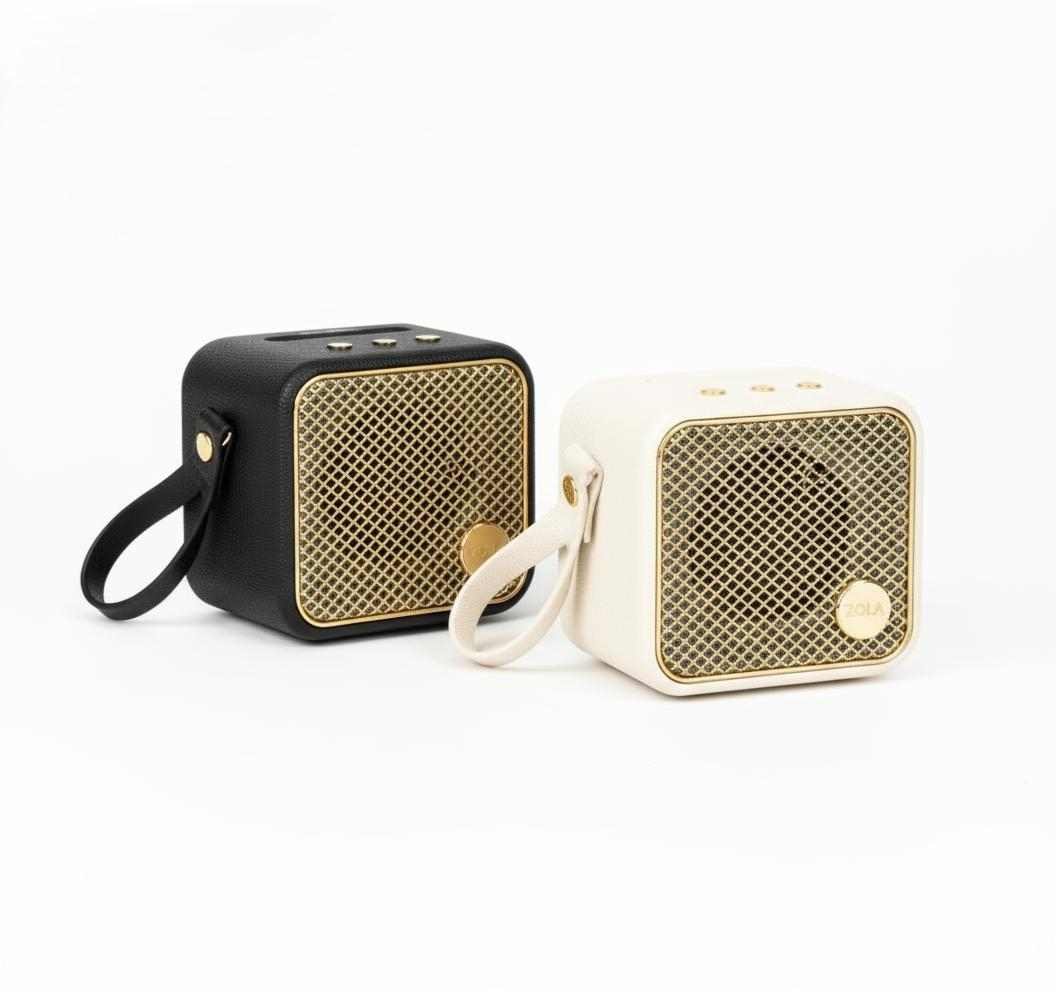 The Zola is a compact 5W portable microphone and speaker system featuring an 800mAh battery (2-3 hours playback), 1.5-hour quick charge, and 10M wireless range. Available in Black, Pink, and Cream White. Perfect for on-the-go karaoke and entertainment.